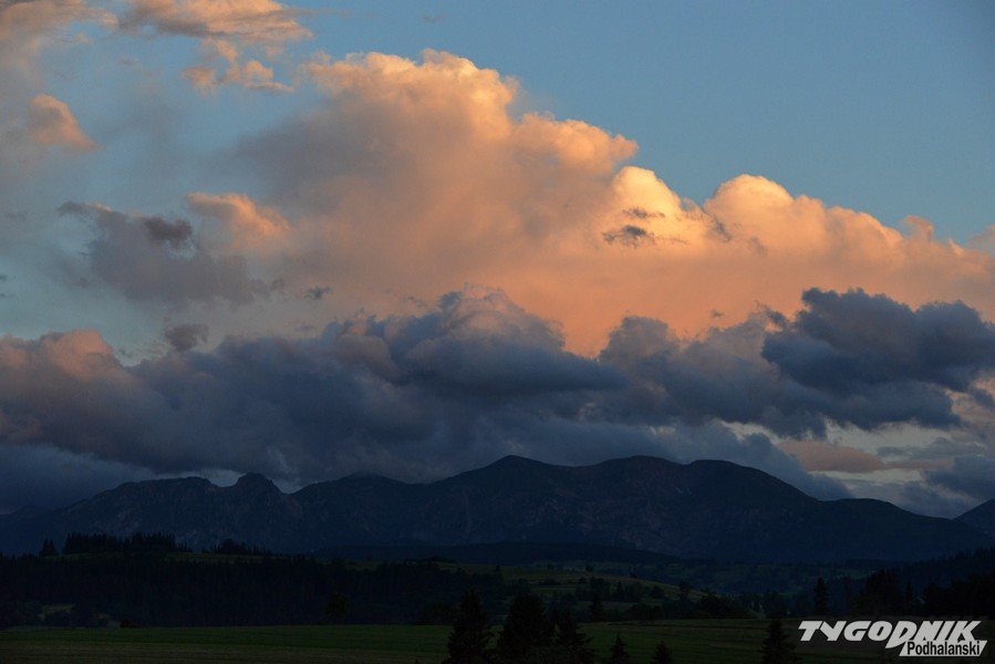Zachodzące wśród chmur słońce, do tego górskie pejzaże pozwalają na chwilę zapomnieć o rozpędzonym świecie.