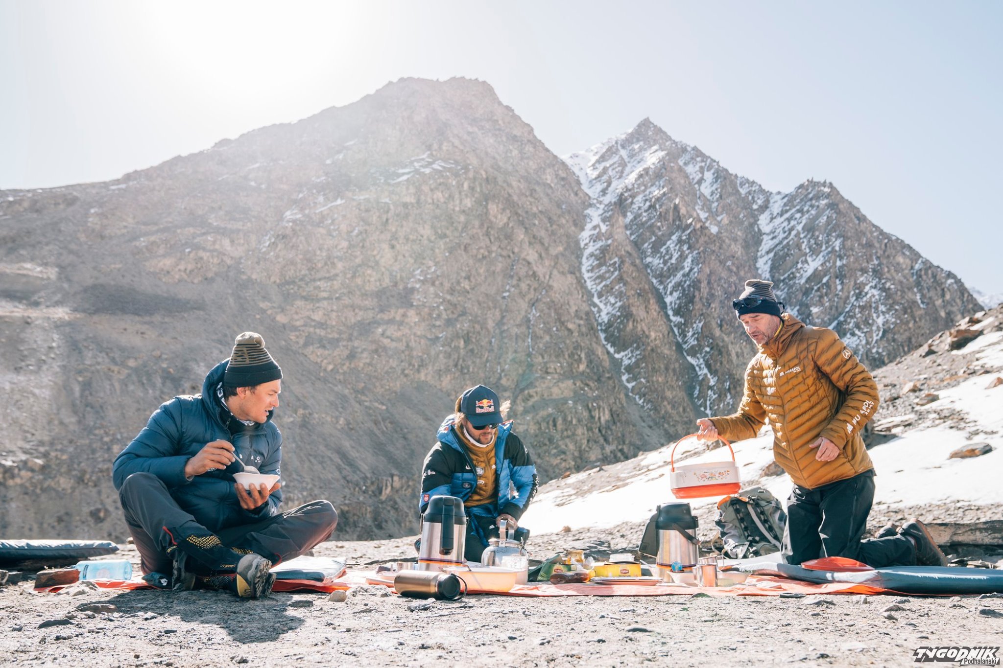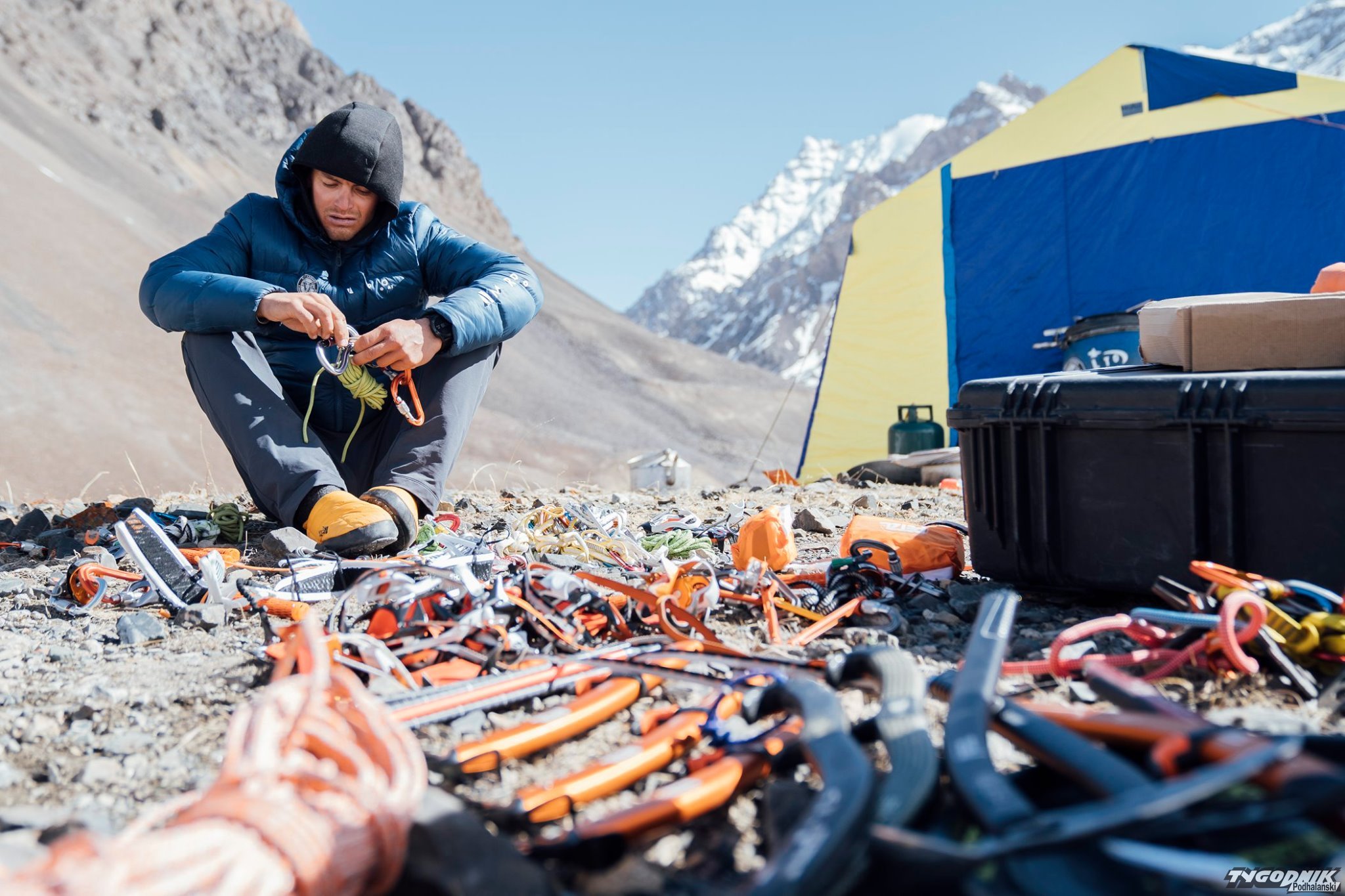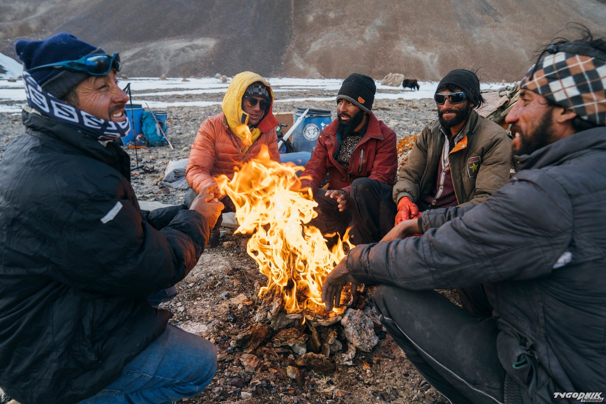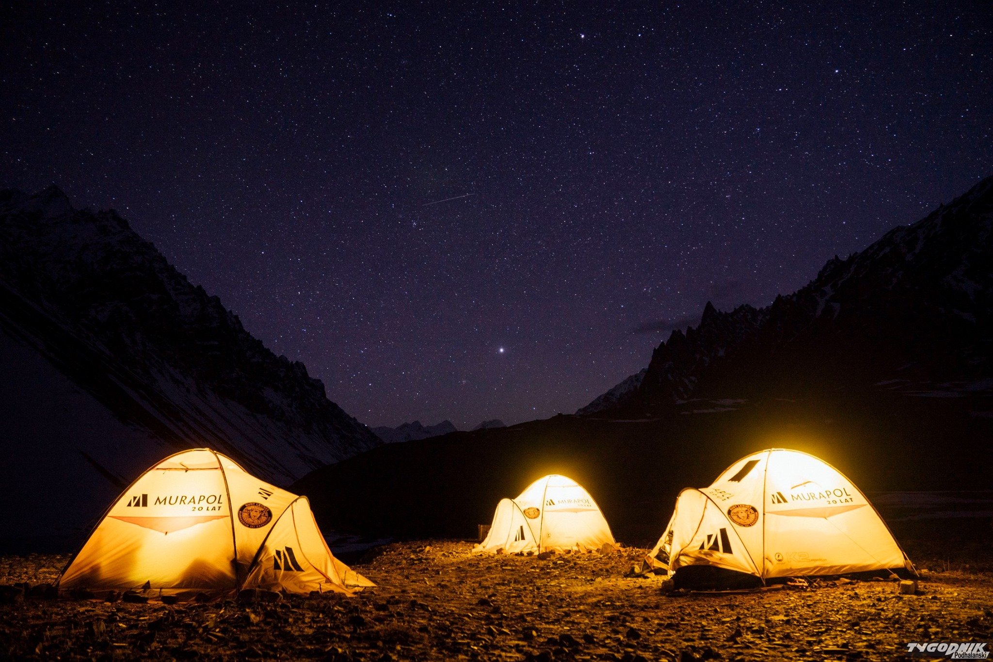 "Po pokonaniu przełęczy rozłożyliśmy obóz kilkaset metrów niżej, gdzie nie było śniegu a temperatura była nieco wyższa. Po drodze tylko przez chwilę zobaczyliśmy koronę Yawasha, niestety z base camp szczyt był niewidoczny. Niesamowita była świadomość, że otacza nas wyłącznie dzika natura, a od cywilizacji dzieli nas kilka dni drogi. Coś niesamowitego i przerażającego jednocześnie".