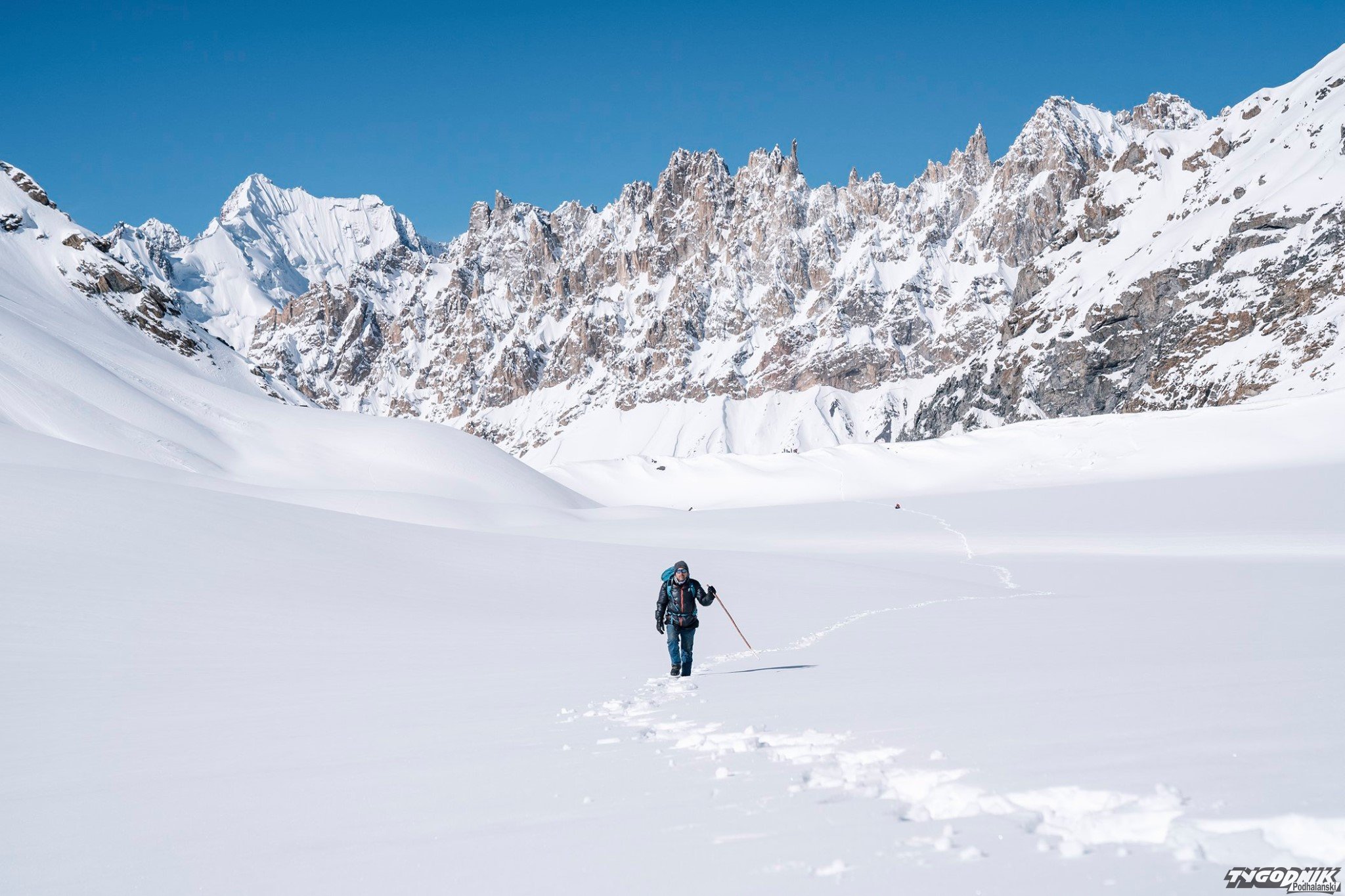Pokazuje kolejne zdjęcia z wędrówki na dziewiczy szczyt pakistański.