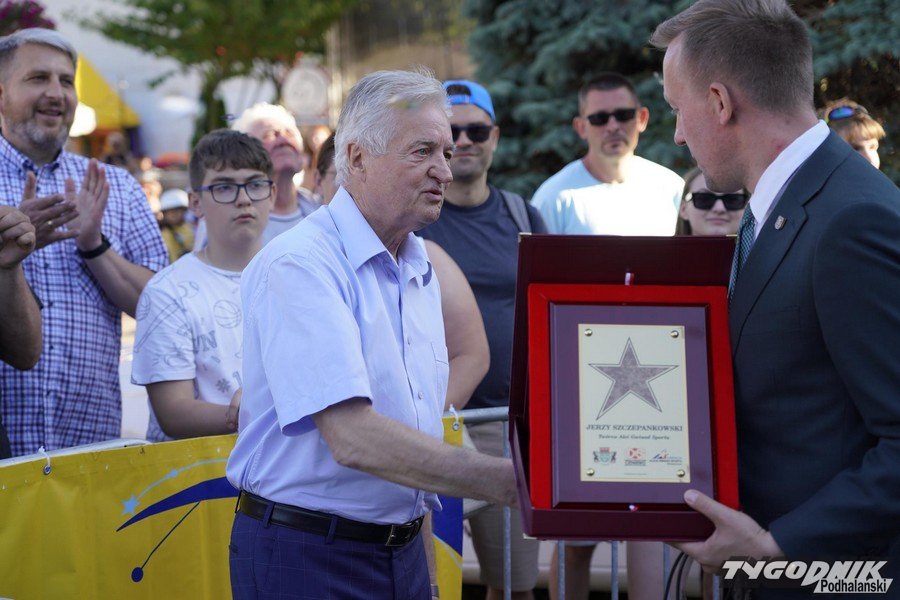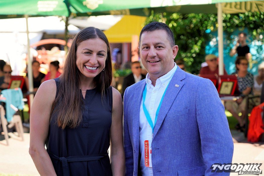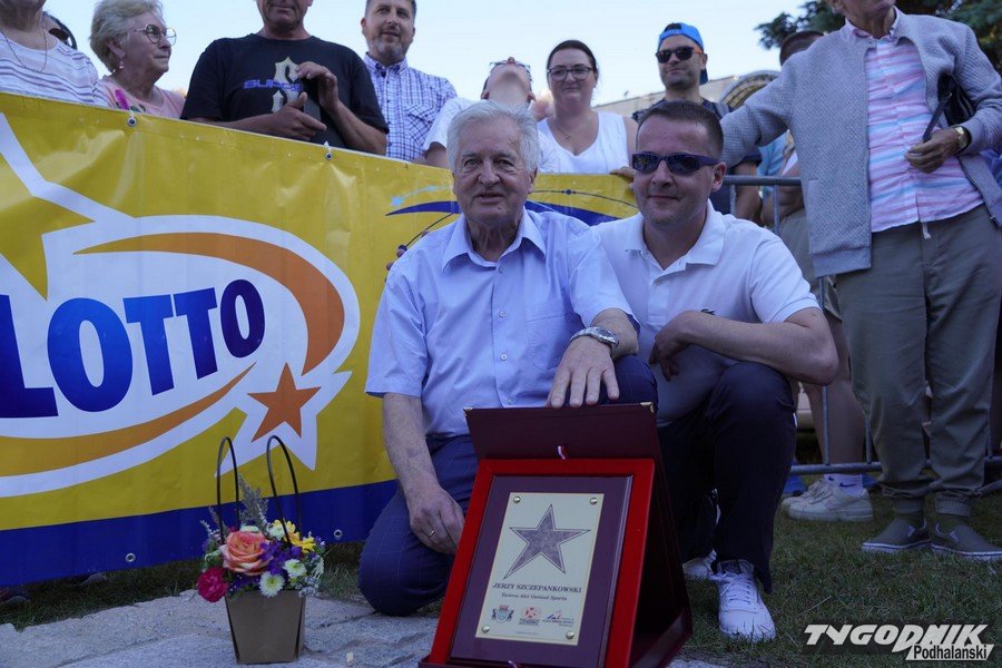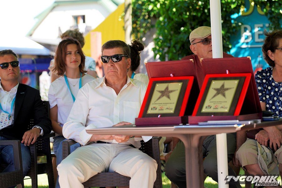 Justyna Kowalczyk i trener Aleksander Wieretelny w Alei Gwiazd Sportu