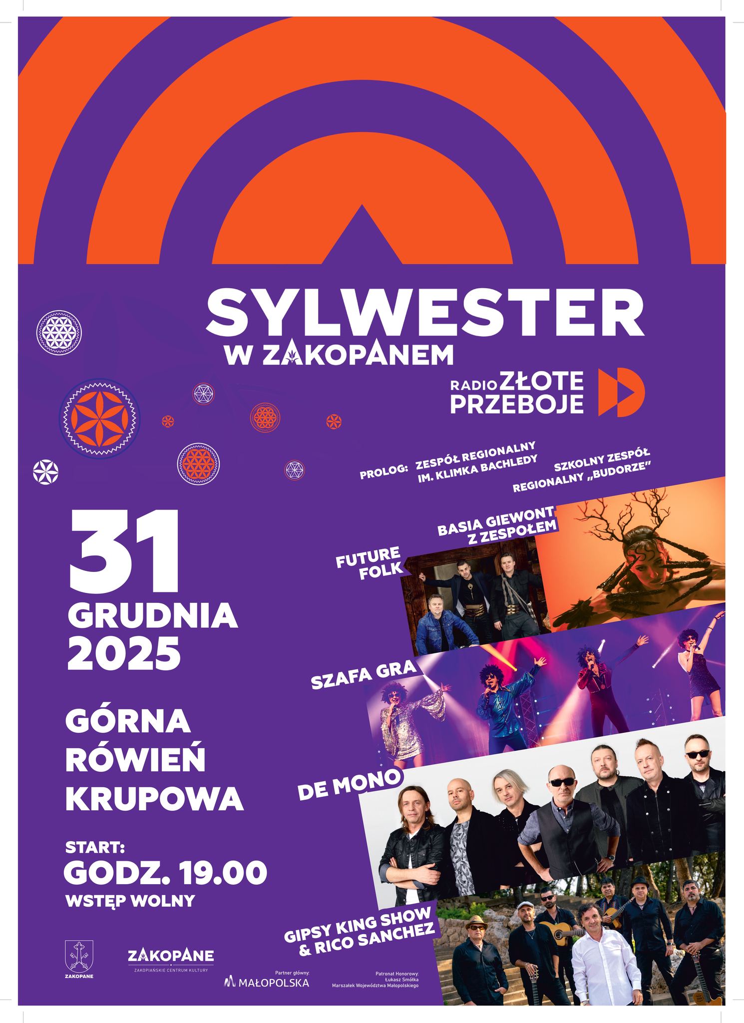 Zanim zabrzmią pierwsze muzyczne rytmy, Sylwester otworzy akcent nawiązujący do bogatej kultury Podhala. Wieczór otworzy wyjątkowy prolog w wykonaniu Zespołu Regionalnego im. Klimka Bachledy, działającego przy Związku Podhalan – Oddział w Zakopanem, oraz Szkolnego Zespołu Regionalnego Budorze z Zespołu Szkół Budowlanych im. Władysława Matlakowskiego w Zakopanem. To piękne nawiązanie do rodzimej kultury, które wprowadzi publiczność w atmosferę góralskiej tradycji. Tegoroczny koncert otworzy folkowa energia – scenę rozgrzeje Basia Giewont z zespołem, tworząca elektroniczną i alternatywną muzykę pop z elementami folku, mistrzowsko łącząc nowoczesne brzmienia z góralską tradycją. Obok niej wystąpi Future Folk, zespół łączący tradycyjne góralskie melodie z nowoczesną elektroniką. Później publiczność porwie Szafa Gra, kwartet oferujący wciągającą muzyczną podróż przez największe hity ostatnich dekad – prawdziwa przygoda coverowa dla każdego fana muzyki.