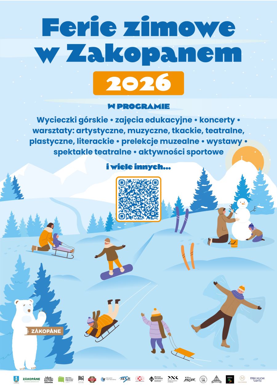 Dziesiątki warsztatów, wycieczek, zajęć sportowych i artystycznych, koncertów i spektakli czekają na wszystkich, którzy zdecydują się spędzić ferie zimowe pod Giewontem. Zapraszamy mieszkańców i turystów do zapoznania się z przygotowaną ofertą. Życzymy dobrej zabawy i miłego wypoczynku!